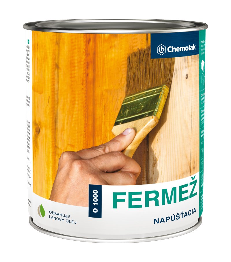 Chemolak fermež O 1000 bezbarvá se používá na základní napouštění dřeva a jiných savých podkladů pod další nátěry olejovými nebo syntetickými nátěrovými látkami. Zachovává přirozenou barvu dřeva, vsakuje do hloubky materiálu a zevnitř ho chrání před nepříznivými vlivy.
