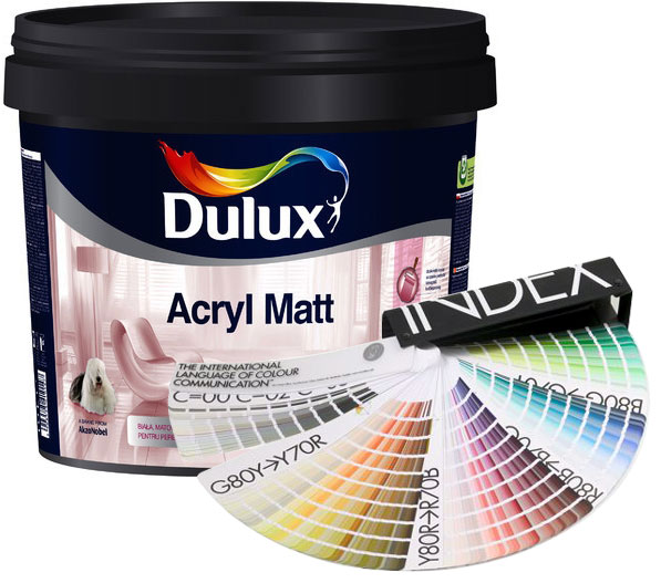 Dulux Acryl Matt je akrylátová barva vysoké kvality určená pro dekorační a ochranné nátěry stěn a stropů v interiéru. Barva je dostatečně viskózní, takže při aplikaci neodkapává a lehce se roztírá. Nabízí vysokou vydatnost při zachování dobré kryvosti, nátěr je otěruodolný a prodyšný pro vodní páry. V případě probarvení zdravotně nezávadnými barevnými pastami je vhodná i pro nátěry interiérů náročných na hygienu jako jsou školy, jídelny, zdravotnická zařízení apod. Nátěr může přijít do náhodného styku s potravinami.
