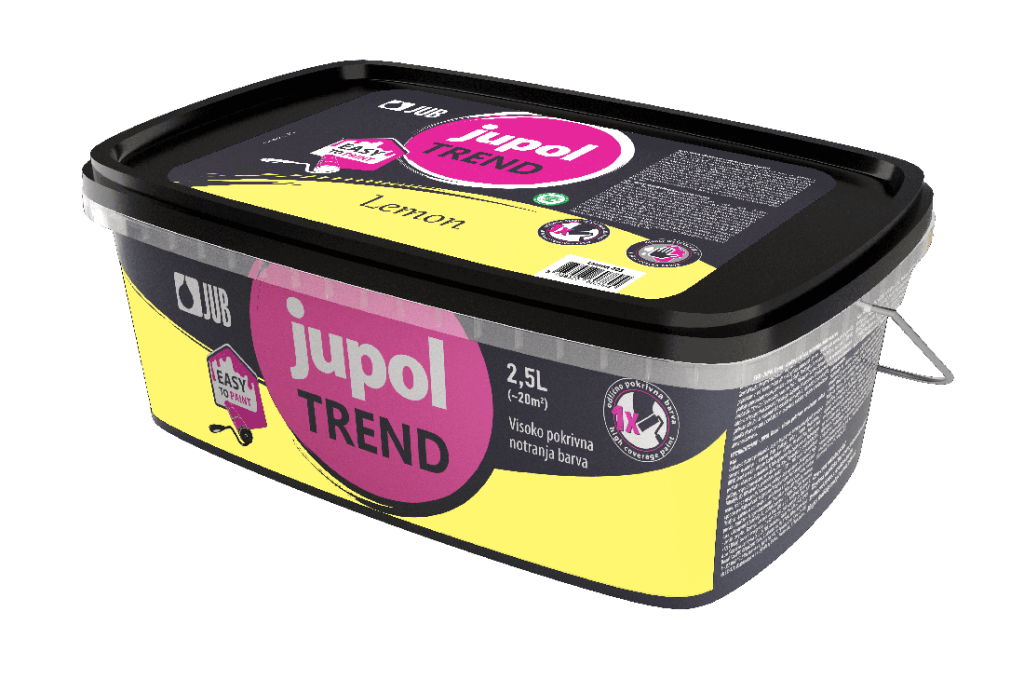 Jupol Trend je vysoce kvalitní vnitřní vodou ředitelná malířská barva, dodávaná v módních odstínech. Vyznačuje se velmi snadným nanášením a výjimečnou kryvostí – obvykle se nanáší pouze v jedné vrstvě. Krémová konzistence minimalizuje odstřik a odkapávání. Má vysokou paropropustnost a je odolná proti oděru za mokra – natřené povrchy jsou omyvatelné. Barva má mimořádně nízký obsah těkavých organických látek (VOC < 1 g/l) – je šetrná k lidskému zdraví a životnímu prostředí. Může se nanášet na různé pevné, suché a čisté podklady – štukové omítky stěn a stropů, beton, sádrokartonové, vláknocementové a dřevotřískové desky, reliéfní tapety. Podklad před prvním nátěrem natřeme vodou rozředěnou AKRYL Emulzí (1 : 1).
