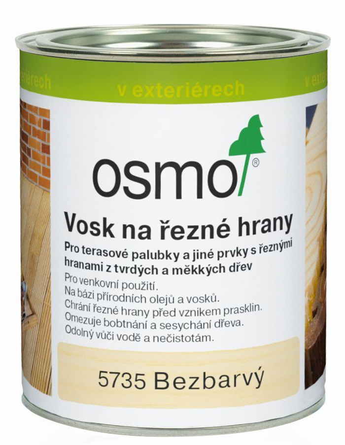 Vosk Osmo 5735 chrání dřevěné terasy před popraskáním v místě řezu a minimalizuje bobtnání či smršťování.
