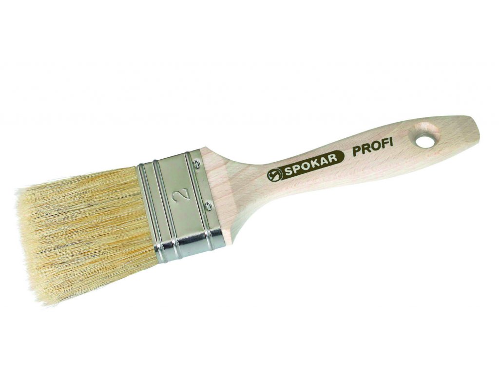 Vlákna ze směsi štětiny a dutých syntetických vláken. Držadlo je dřevěné nelakované.